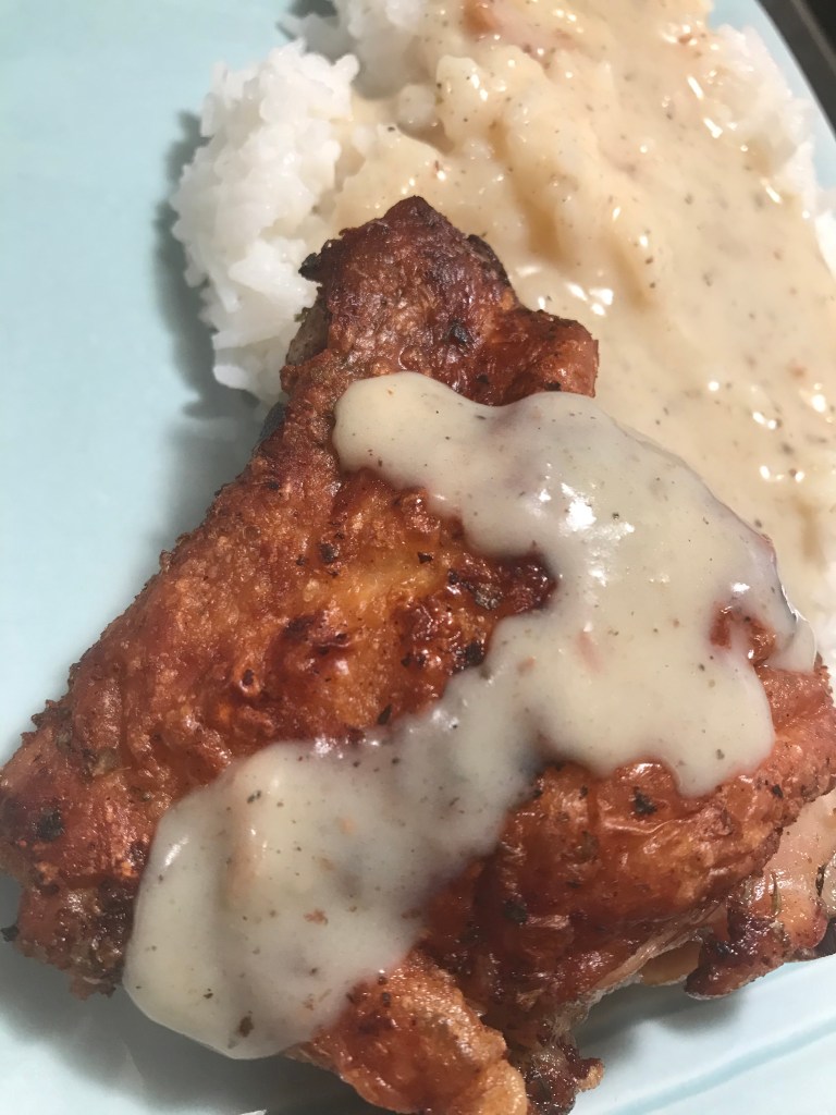 Sear chicken parts in the hot skillet For 2-3 minutes on each side, skin side down first. To avoid crowding the skillet sear the chicken in small batches. Save any drippings left in the pan for chicken gravy if you are going to be serving this delicious chicken with rice or potatoes.