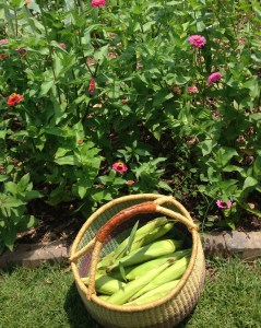 corn harvest and zinnias